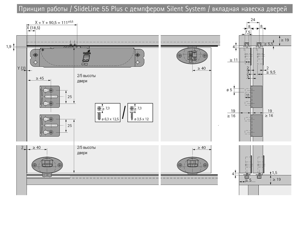 Направляющий элемент под прикручивание (верхний), для шкафов с 2 вкладными дверями Slide Line 55 Plus от бренда Hettich.