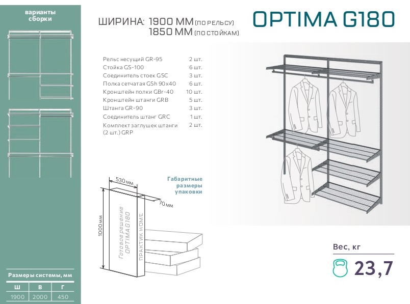 Рельс несущий ПРАКТИК Home GR-95 графит – 2 шт.