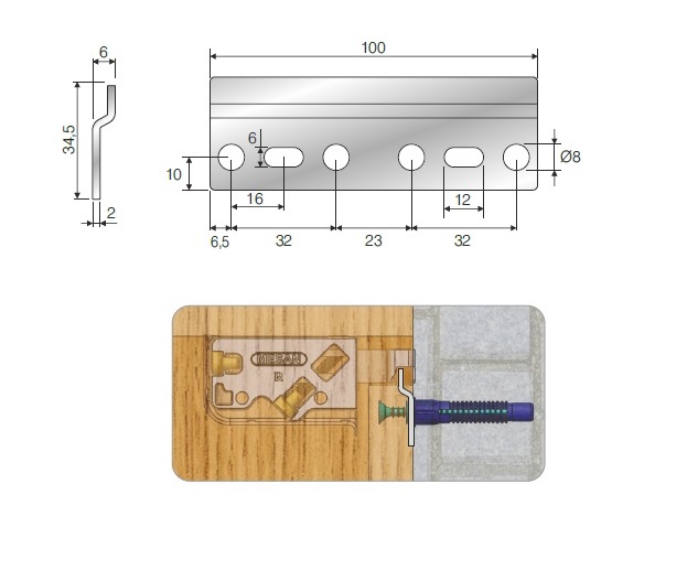 Крепежная планка 100х34,5х2мм (Mesan)