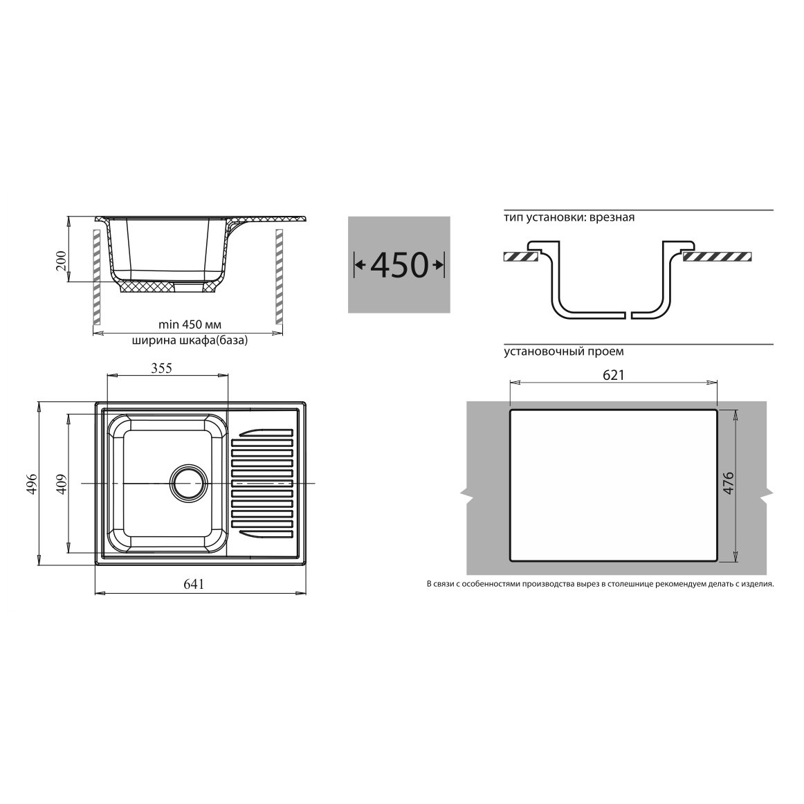Общий размер мойки