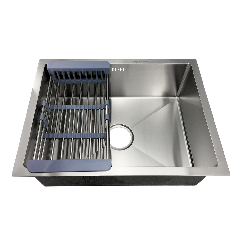 Мойка врезная FABIA PROFI 58х44 см, толщина основания 3,0 мм, чаша 0,8 мм, глубина 200 мм + большой сифон с переливом. Сифон с углубленной горловиной, мусоросборником и крышкой. В комплект входит универсальная раздвижная корзина. Без отверстия под смеситель.