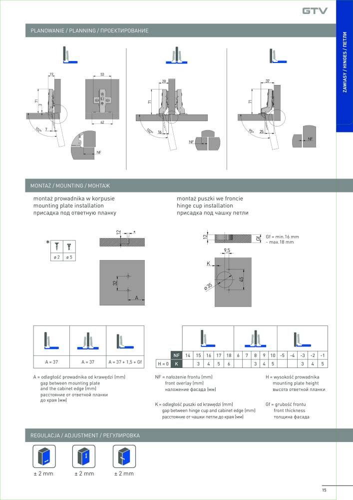 Шурупы для монтажа приобретаются отдельно. Комплект петель gtv идеально подходит для создания стильной и функциональной мебели, обеспечивая надежность и долговечность в использовании.