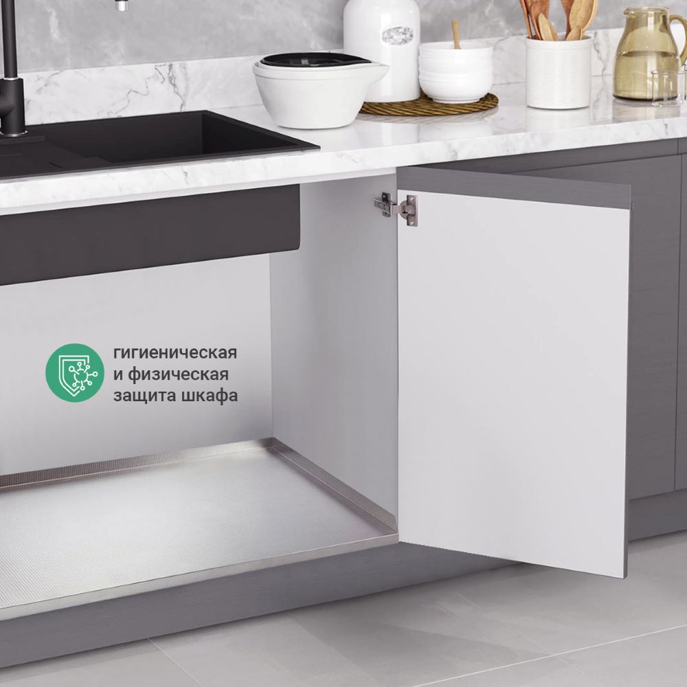 Устанавливается на дно шкафа, предотвращает подтекание воды в шкаф под раковиной.Итальянские поддоны,под плиту 18 мм .