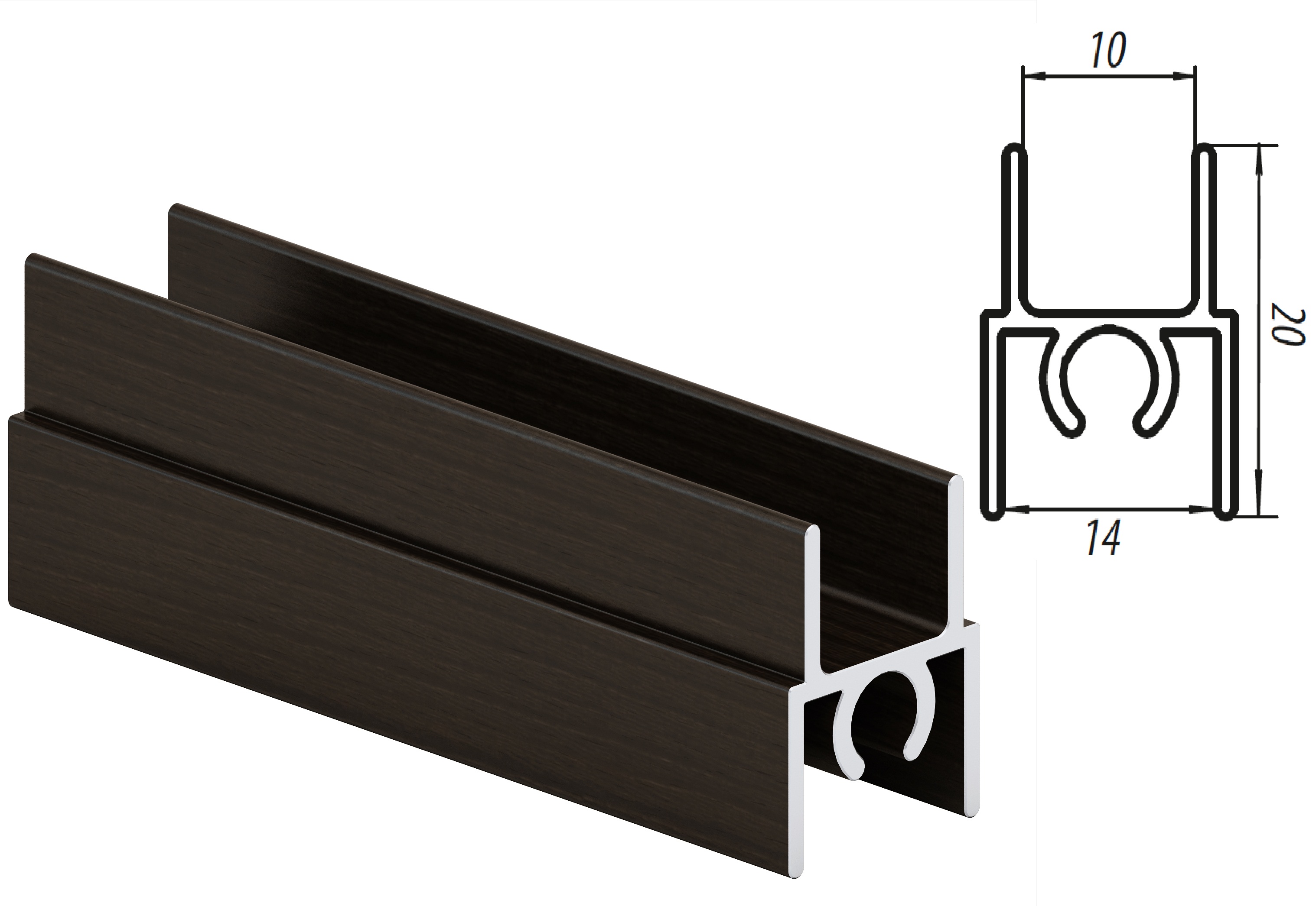 Горизонтальный верхний профиль монтируется на торец верхнего среза двери раздвижной системы дверей для шкафа-купе. Эта деталь также придает дверному полотну эстетичный вид и служит в качестве декоративной планки.