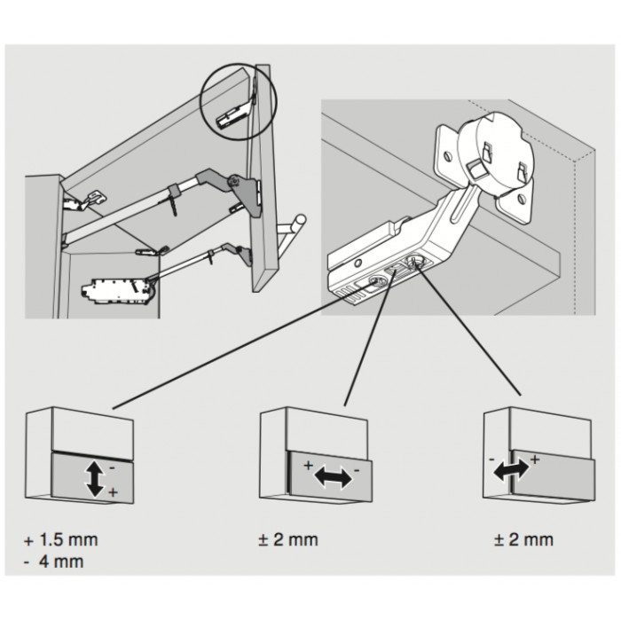 Средняя петля для AVENTOS HF top — это надежный компонент, предназначенный для соединения фасадов между собой. Она крепится на саморезы, что обеспечивает прочное и стабильное соединение. Механизм закрывания не оснащен пружиной. Петля blum имеет регулировку по ширине в диапазоне + / - 2 мм и по глубине в диапазоне + 1,5 / - 3 мм, что позволяет точно настраивать положение фасадов. Рекомендуется использовать 3 петли для фасадов шириной от 1200 мм или весом от 12 кг, а 4 петли — для фасадов шириной 1800 мм или весом от 20 кг. Петля обеспечивает надежность и долговечность, делая AVENTOS HF top идеальным выбором для функциональной кухни.