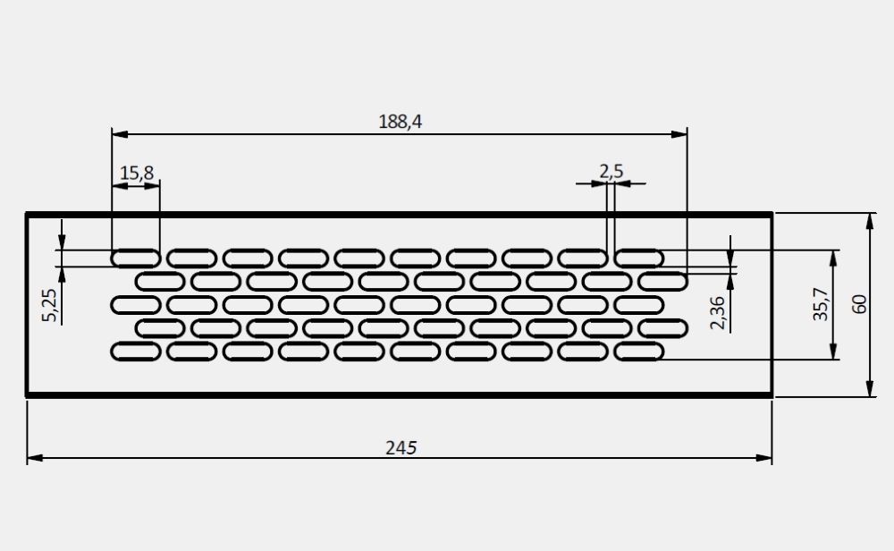 Вентиляционная решетка GTV для цоколя 60x245 мм (серый), изготовленная из алюминия, представляет собой стильный и практичный элемент системы воздухообмена. Основное предназначение решетки gtv — закрытие отверстий воздуховодов, обеспечивая правильный поток воздуха и улучшая вентиляцию в помещениях.