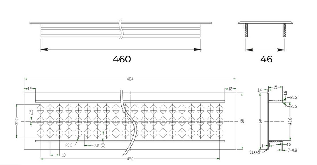 Вентиляционная решетка GTV 484x60 мм (серый) — это надежный и стильный элемент системы воздухообмена, закрывающий отверстие воздуховода в помещении. Решетка gtv идеально выполняет несколько функций. Во-первых, её декоративная функция позволяет скрыть вентиляционную трубу и придает помещению аккуратный и завершенный вид. Во-вторых, защитная функция предотвращает попадание посторонних предметов внутрь системы циркуляции воздуха, обеспечивая ее эффективность. В-третьих, регулирующая функция позволяет направлять поток воздуха, создавая комфортные условия в помещении. Проходное сечение воздушного потока составляет 94 см², что обеспечивает оптимальную вентиляцию.