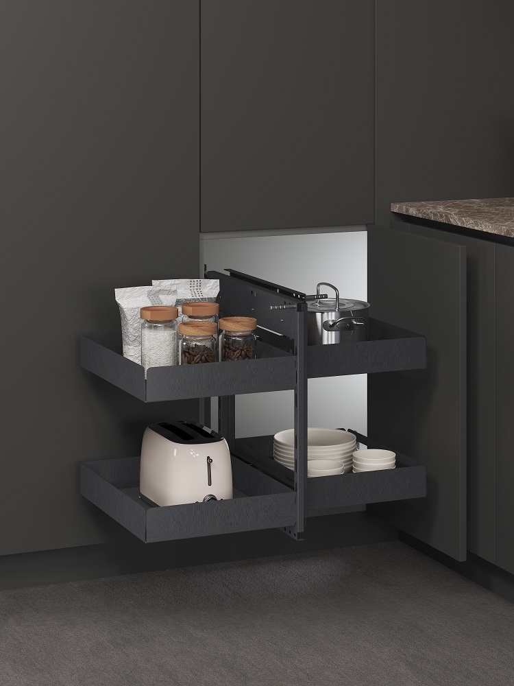 - Используется с распашним фасадом, не требует крепления к фасаду, универсальный монтаж, как с левой, так и с правой стороны